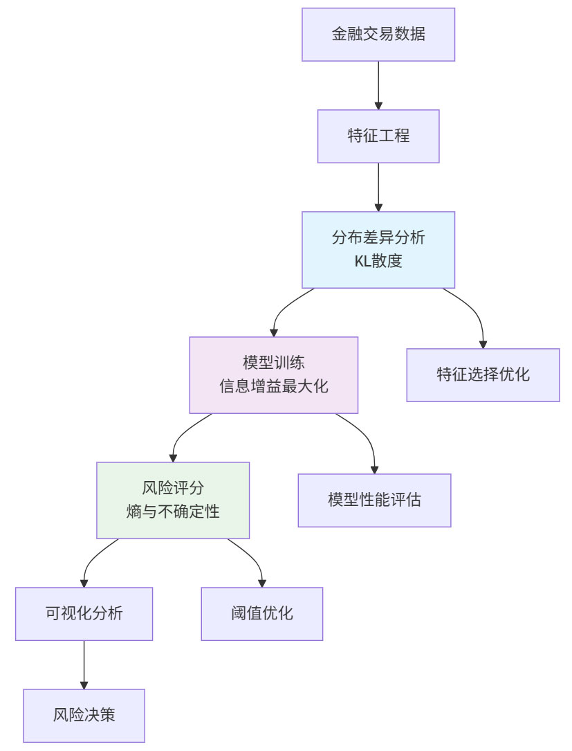 今天我们主要是将信息论原理系统性地应用于金融风控的全流程,并提出了结合概率和不确定性的风险评分方法,将抽象的数学理论转化为实用的工程解决方案,通过KL散度、信息增益和熵等核心概念,系统在保持高性能的同时,提供了强有力的理论解释和业务洞察。