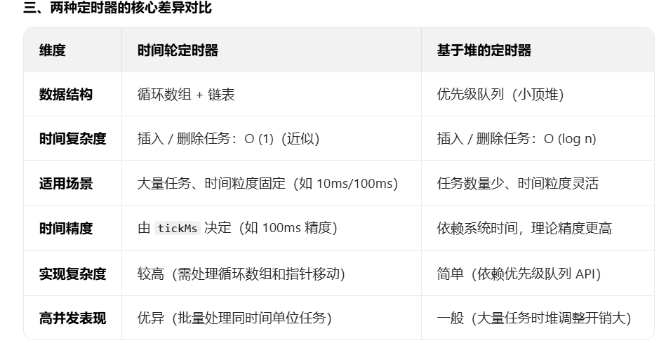 * 特点:实现简单,适合任务数量不多的场景,时间精度高(依赖系统时间)