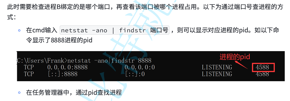 ◦ 如果需要运行A进程,则可以修改进程B的绑定端口,换为其他没有使用的端口。