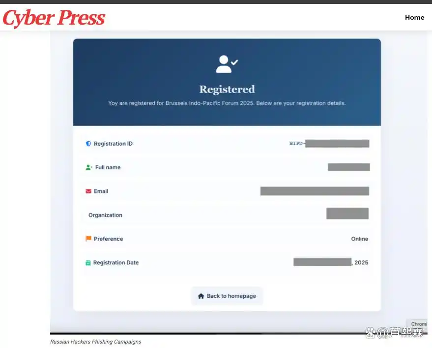 该行动聚焦于欧洲安全政策圈层,目标包括政府外交人员、智库研究员、国际组织代表等高价值个体。攻击者精心选择“贝尔格莱德安全会议”(Belgrade Security Conference, BSC)和“布鲁塞尔印太对话”(Brussels Indo-Pacific Dialogue, BIPD)等真实存在的高端论坛作为诱饵,搭建几乎无法肉眼区分的仿冒报名页面。用户被邀请“完善注册信息”或“提交演讲议题”,并提示“使用Google/Microsoft账号一键登录以简化流程”。一旦用户点击授权,攻击者即通过OAuth授权码或设备码流程,在用户无感知的情况下完成账户接管。