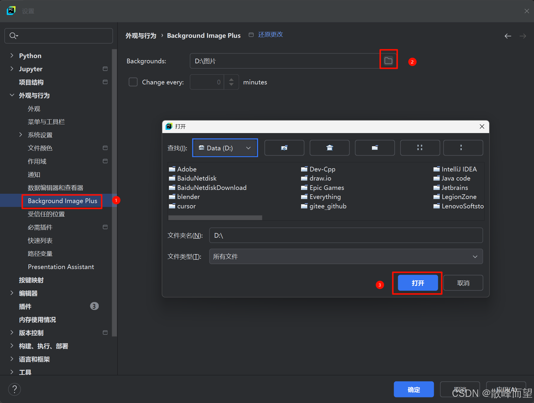 之后再重新打开还是以上步骤,找到外观与行为,然后点击Background Image Plus,按照以下方法操作。