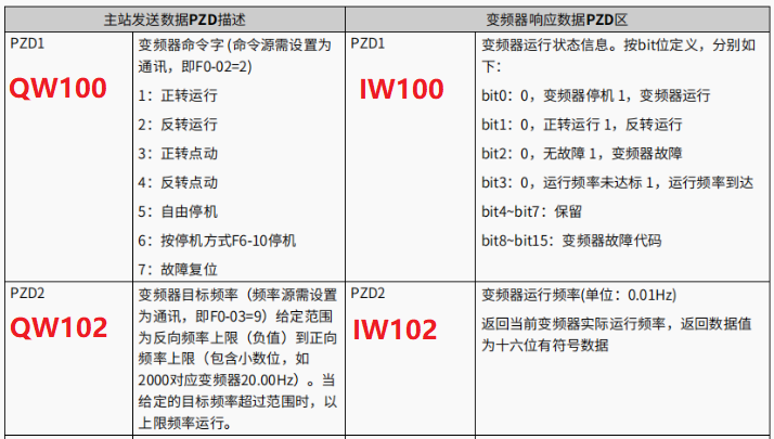 我们的目标是能够实现简单的启停、正反转、故障复位,那么实际只需要对PZD的数据的bit位进行操作即可。