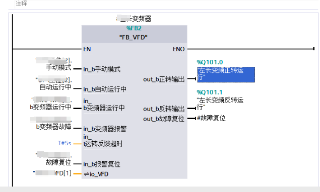 需要注意的是,故障复位的Q101.6在置TRUE的情况下,操作正反转都是不行的,在逻辑上可以加个互锁。
