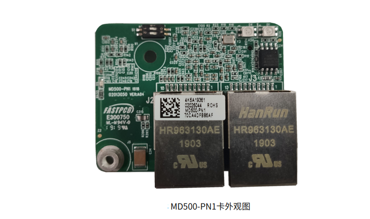 我们上图红框可以看到要实现通过PN对MD500系列变频器控制,本身并不具备PN接口的,那就需要用到扩展卡,例如,把图中放大后就是MD500-PN1扩展卡: