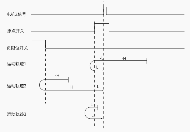 上图H是回原点的高速抵近,L是遇到原点信号后的低速爬行,分高低速是为了同时加快效率和提高准确度。