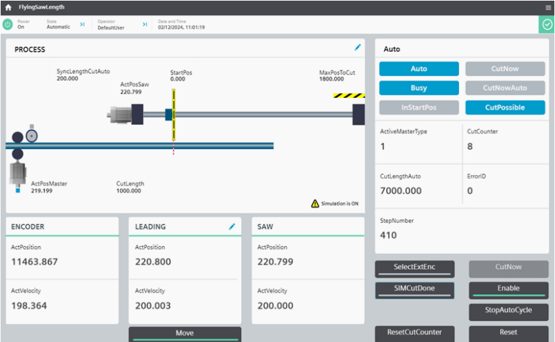 - 同步阶段(P2-P3):当需要切割时,飞锯的锯车启动,并加速到与生产线材料完全一致的速度。在这个阶段,锯(切割工具)与材料之间没有相对运动,仿佛它们“粘”在一起同步移动。这确保了切割瞬间的稳定性与精度。