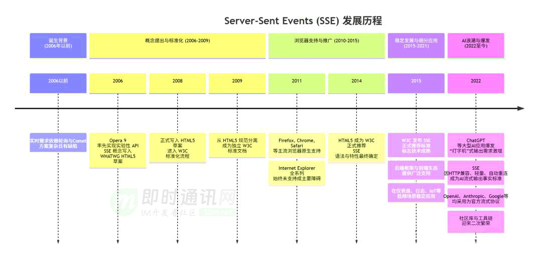 SSE 的发展是 Web 标准化进程和实时通信需求共同推动的结果。