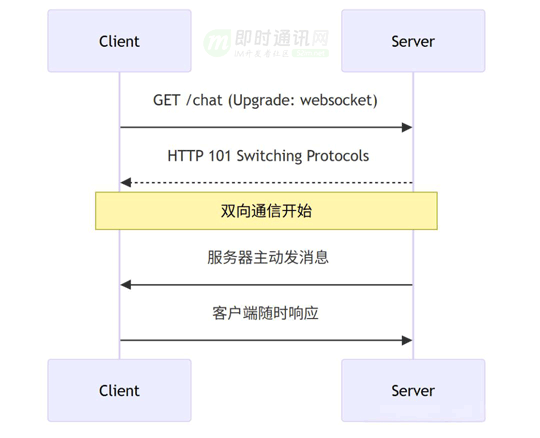 原理:在客户端与服务器之间建立一条全双工的 TCP 长连接,双方可随时互相推送数据。