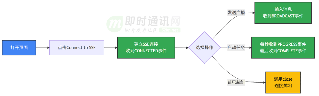 4)事件设计:通过name区分不同类型的事件(如PROGRESS/BROADCAST),客户端按需监听,逻辑更清晰。