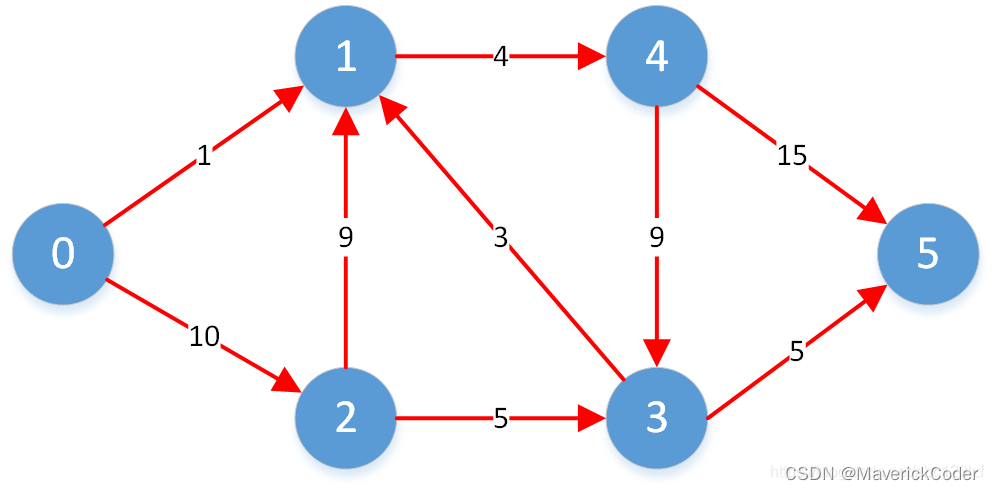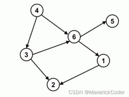 今天我们用链表形式来实现一个邻接表,在实现邻接表之前,我们先观察一张有向图来摸索一下图中结点之间的关系: