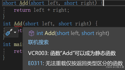 }答:函数重载与返回类型没有关系,所以明显不是函数重载,在一些编译器中会报错。 而我们今天就深入探讨一下,为什么函数重载和返回类型没有关系?又为什么和参数类型、顺序、个数有关系?