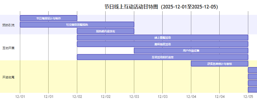 生成一个为期 5 天的节日线上互动活动甘特图。