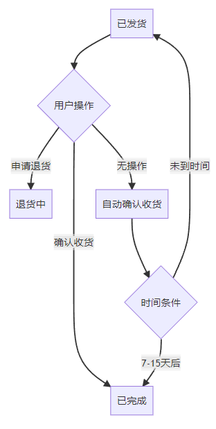 4. 输出要求:输出mermaid状态图,状态转移条件标注清晰,流转逻辑符合电商订单常规规则,图表直观易懂展示效果