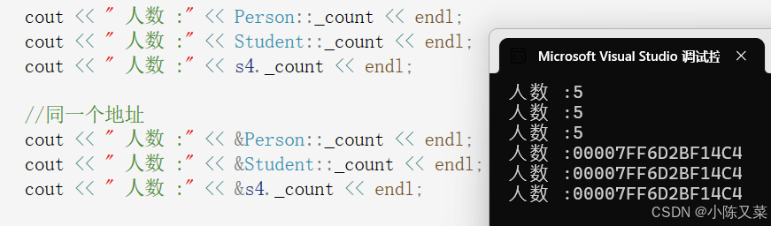 我们可以看出不管是从值还是地址的角度,基类中的静态成员都只有一个!