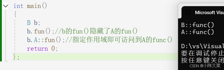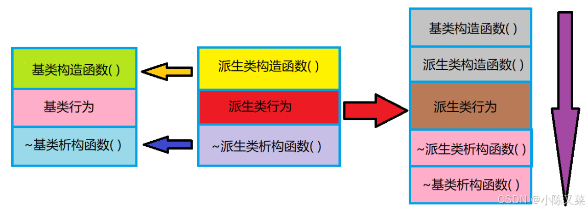 //子类析构函数完成后会自动调用父类析构函数,所以不需要我们显示调用