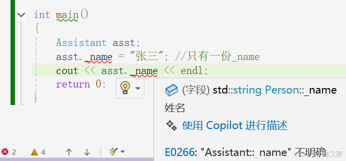 因为两份Person成员的存在,所以访问_name的时候就会出现二义性,不知道是哪一个。