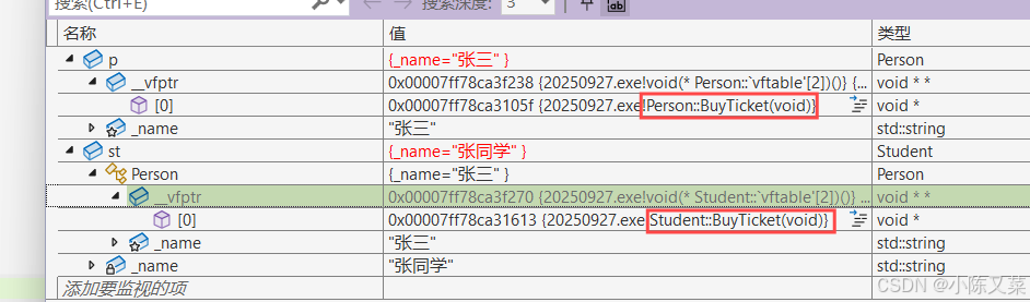 如下面这个和上面那个p->BuyTicket()对比就知道,动态绑定和静态绑定的区别: