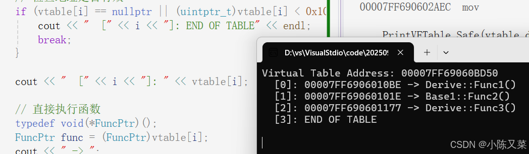 // 打印虚表并执行函数