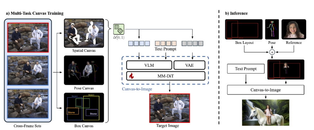 Canvas-to-Image 正是针对这一结构性限制提出新的方案:所有控制信号都汇聚到同一张画布中,由模型在同一个像素空间内理解、组合并执行。