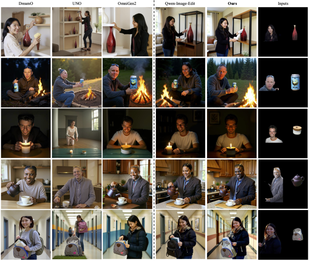 这样的跨帧采样策略会在输入画布中自然引入姿态、光照、表情等方面的显著差异,使得输入提示与目标图像之间不存在可直接复用的像素对应关系。由此,模型无法依赖简单的拷贝机制来完成训练任务,而必须学习更抽象的语义关联与结构映射。这一设计在训练阶段有效规避了「抄输入」的捷径,从根本上避免了模型在推理阶段出现 copy-paste 式的生成行为。
