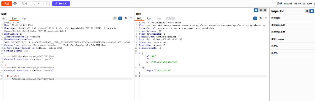 "$1:a:b" -> {"a":{"b":"foo"}}.a.b -> "foo"在存在漏洞的 React Server 版本中,我们可以通过以下 multipart 请求强制返回 500 错误: