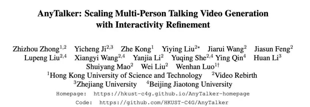 文章链接:https://arxiv.org/abs/2511.23475 开源链接:https://github.com/HKUST-C4G/AnyTalker 项目链接:https://hkust-c4g.github.io/AnyTalker-homepage