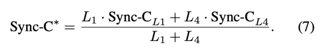 评估指标。对于单人 Benchmark,我们采用多种常用指标:Fréchet Inception Distance(FID)和 Fréchet Video Distance(FVD)用于评估生成数据的质量,Sync-C 用于衡量音频与唇动的同步性,以及第一帧与剩余帧之间的身份相似度。对于多人 Benchmark,我们从不同维度进行评估。新引入的指标 Interactivity 作为主要评估指标。对于 FVD 指标,计算方式与单人基准类似。对于 Sync-C 指标,我们将其细化为 Sync-C*,仅关注每个角色说话期间的唇同步,从而避免长时间倾听段落对最终唇同步得分的影响,具体公式为: