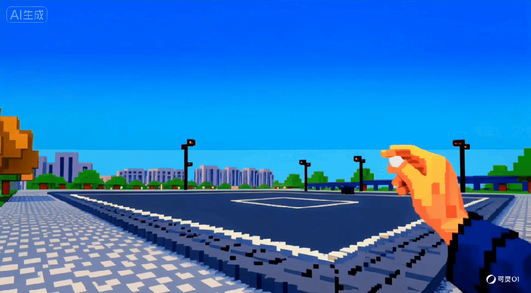 还是用我最开始拍的空地,我们直接把他变成,全部变成像素化,包括手,地面,远处的建筑和天空。