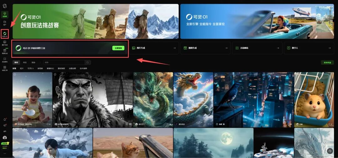 进入首页之后,你看到这两带颜色且明显长的跟其他的icon不一样画风的,就是可灵O1。