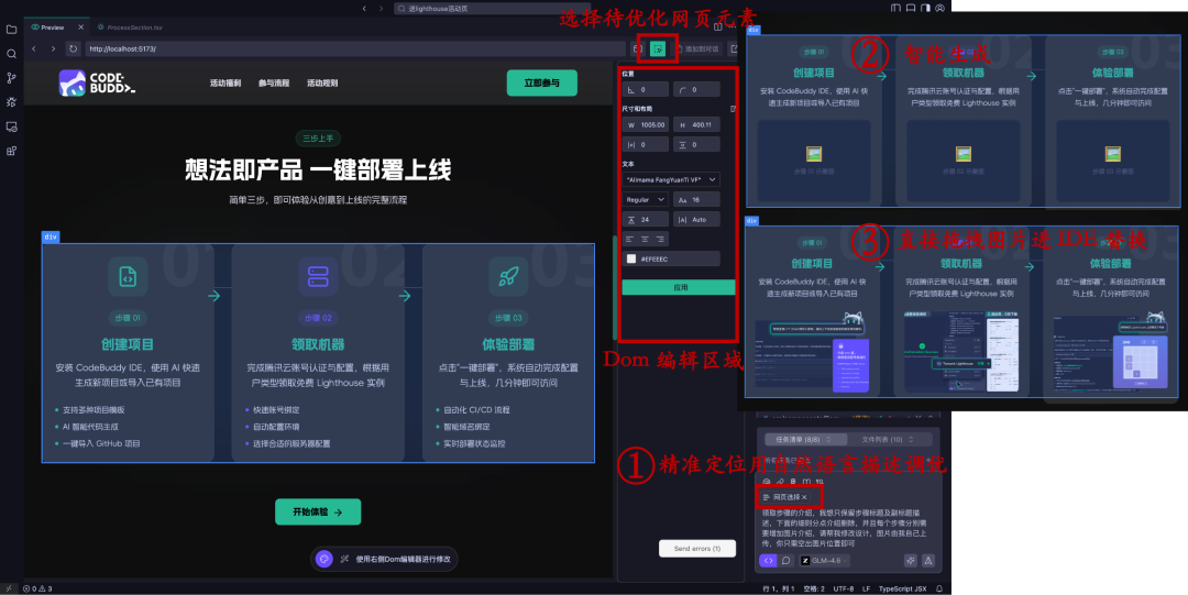 举个🌰:我让 Buddy 优化了领取步骤图片化使页面更直观。