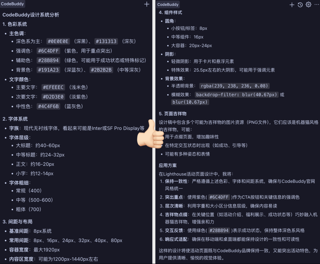 ✅ 给 Buddy 的视觉系统性分析点个赞,大体满意,但此步骤还是发现有一些偏离计划的地方,但不着急改,因为接下来还有计划让 TA 通过 Web Fetch 能力去实际的官网看看,做些细节调优,届时如还没有优化再一并搞定!