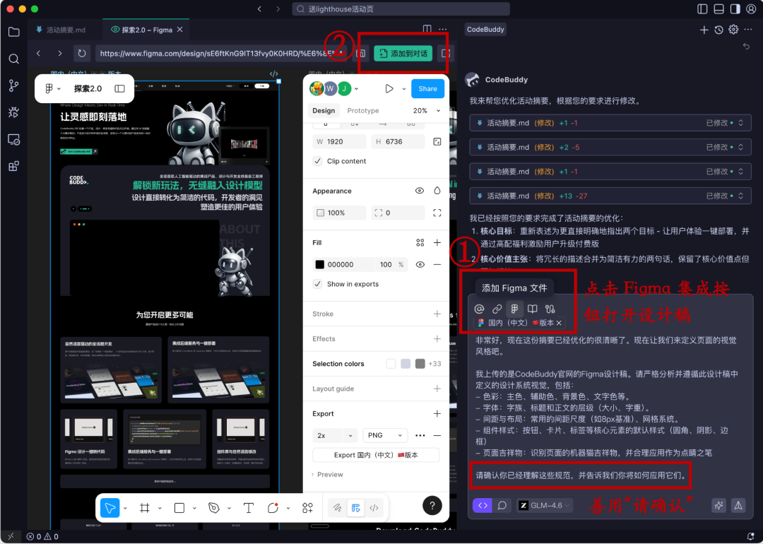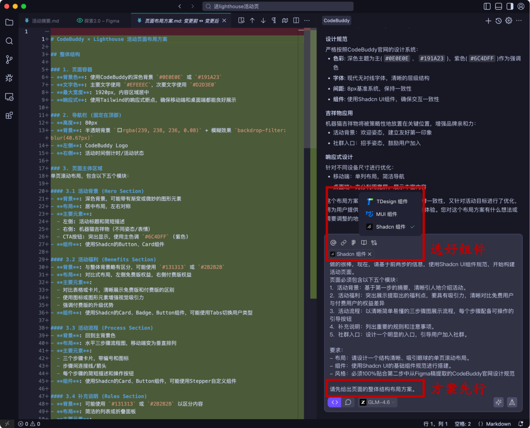 这个时候仍不要着急直接出页面,还是方案先行,经过对话修改,双方对齐信息,确保 Buddy 和你的所思所想步调一致。