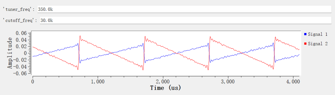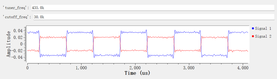 修改 tuner_freq 查看其它两个峰值,可以看到不同形状的波形
