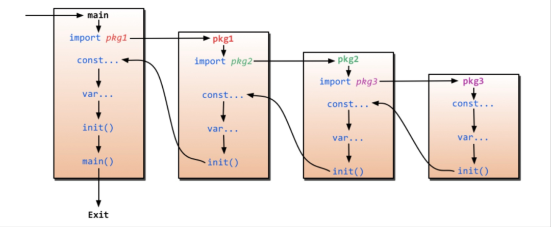 如果多个包是存在依赖顺序的话,又是怎样的执行顺序呢?这里就不上代码了,直接上结论:多个包存依赖关系的包中的init()函数是按照依赖关系从里到外依次执行的,就是最深层的包中的init()函数先执行。