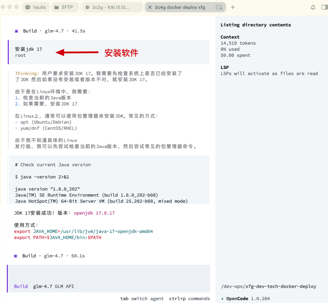 这软件好用是挺好用,但它的源都在 Github 上,很多伙伴在执行官网脚本 curl -fsSL https://opencode.ai/install | bash 是安装不上的。所以,小傅哥做了一个对应的脚本,方便大家更加简化的安装使用。