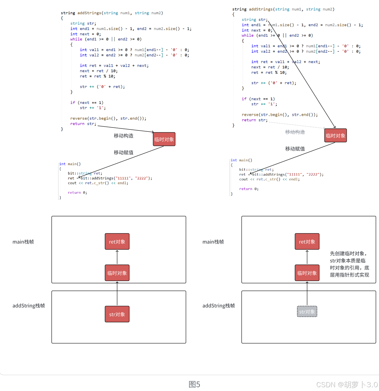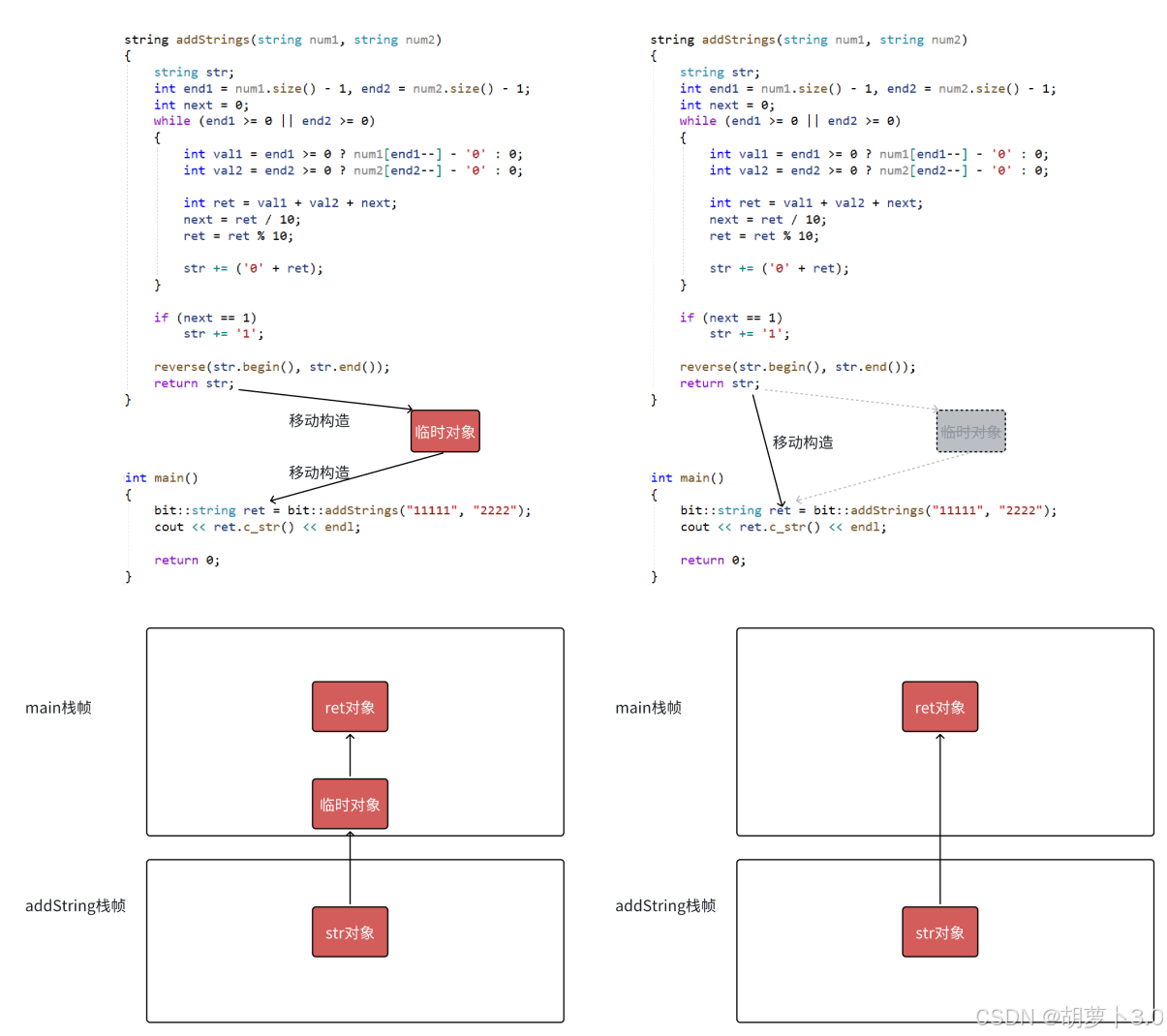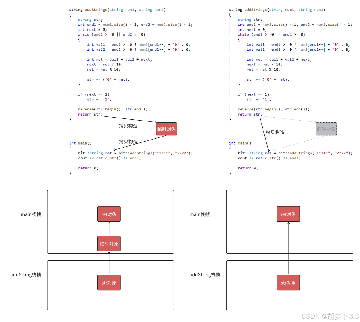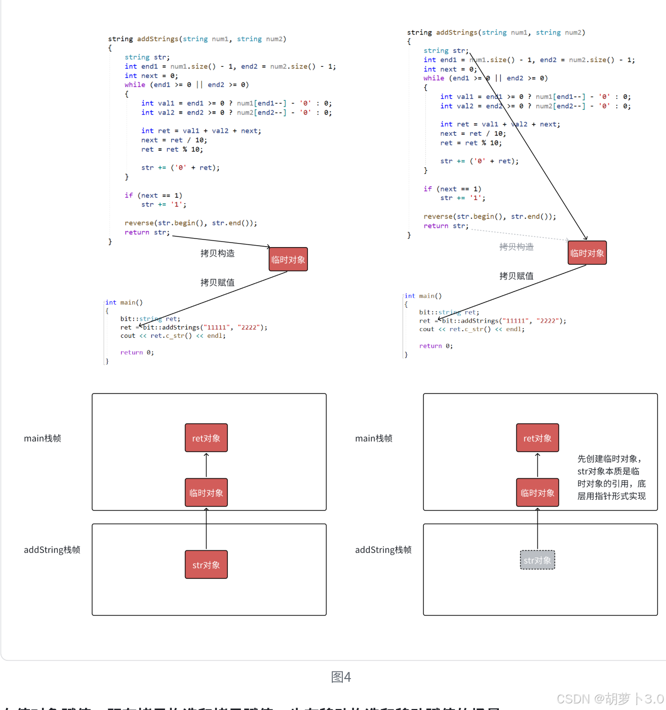 左值引用已经解决大多数场景的拷贝效率问题,但是有些场景不能使用传左值引用返回,如下面的addStrings和generate函数,返回值是一个临时对象,出了函数就销毁了,这种情况下C++98中的解决方案只能是被迫使用传值返回(但是代价有点太大了)