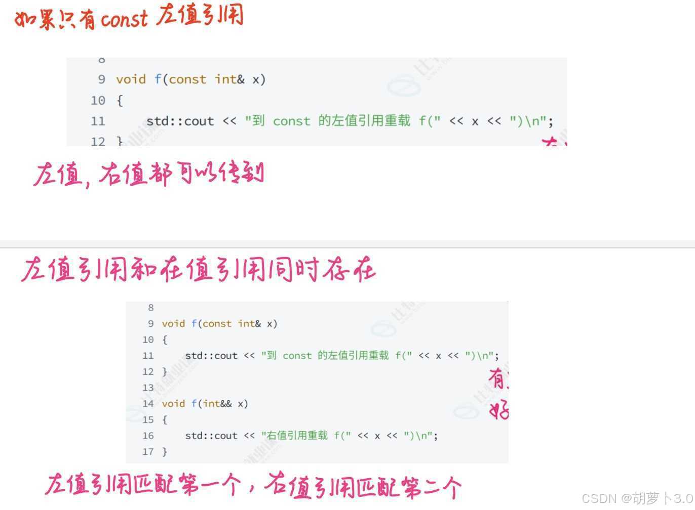 但是C++11以后,分别重载左值引用、const左值引用、右值引用作为形参的函数,会是什么情况