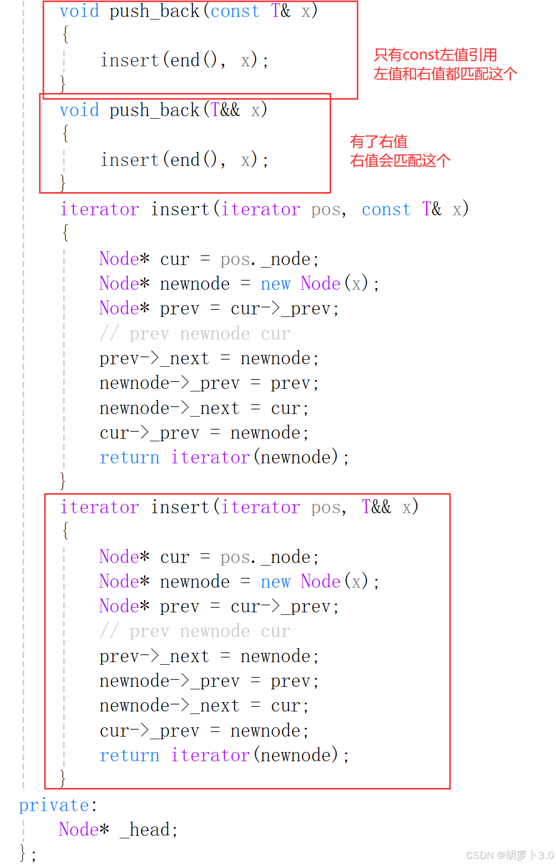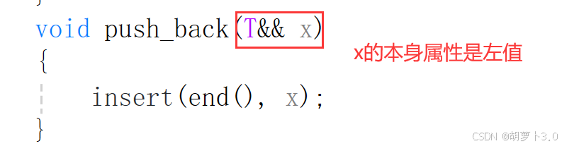 传右值时可以调用右值的push_back,但是右值的push_back复用右值的insert时,却调不到右值引用的insert,这是什么原因?