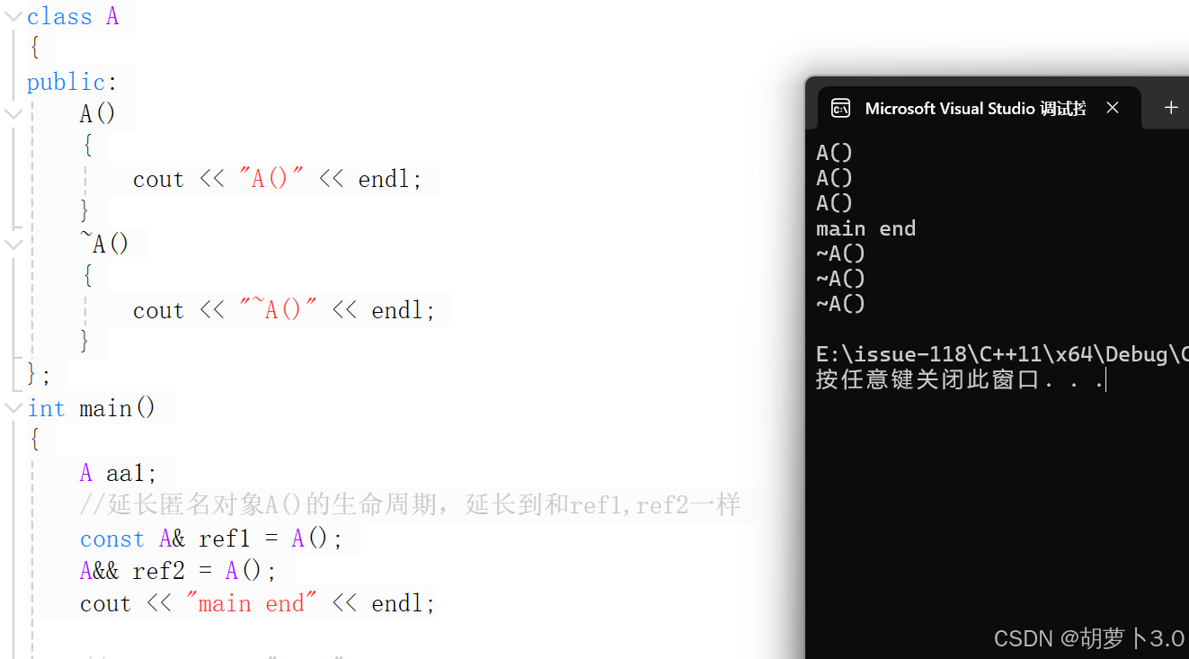 //延长匿名对象A()的生命周期,延长到和ref1,ref2一样