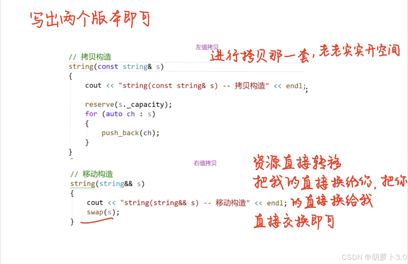现在呢?如果是右值呢,他就不想去拷贝了,而是想去完成移动。这是啥意思?