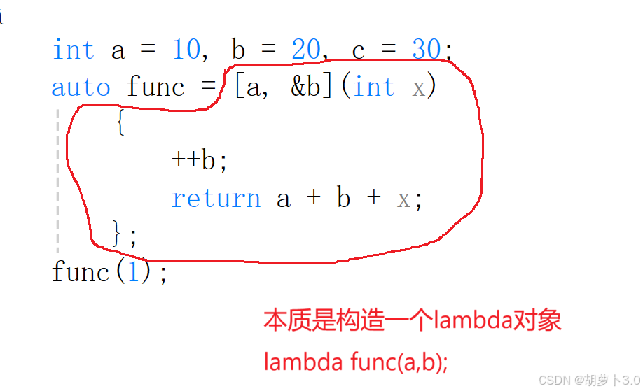 auto func1 = [a, &b]()mutable