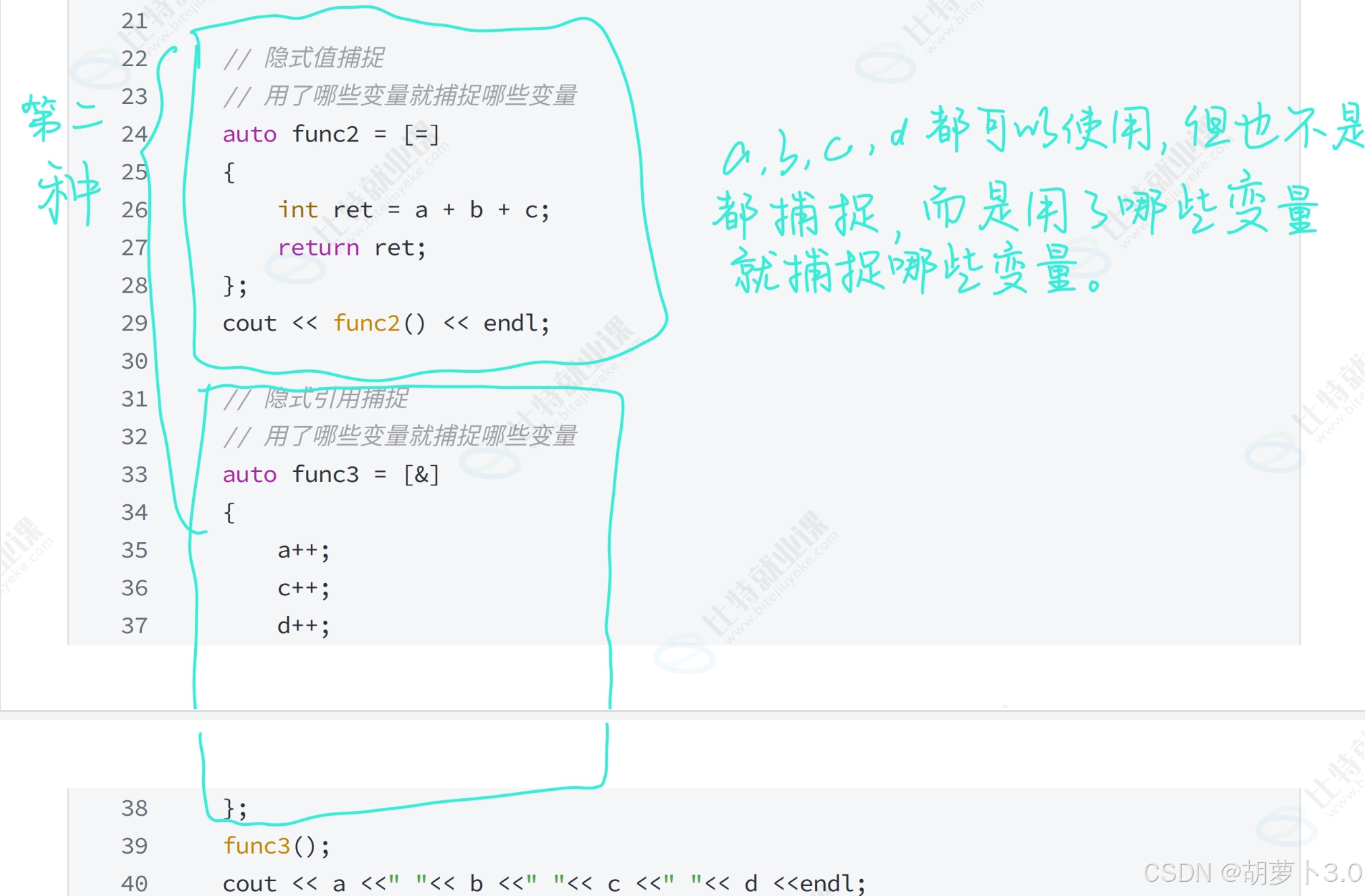 auto func1 = [x,y]//显示捕捉,值捕捉x和y
