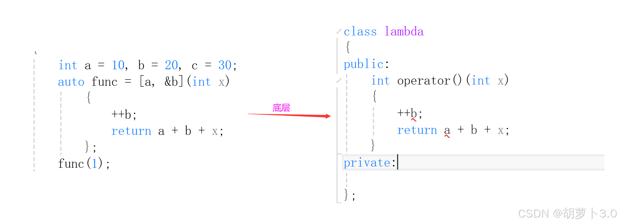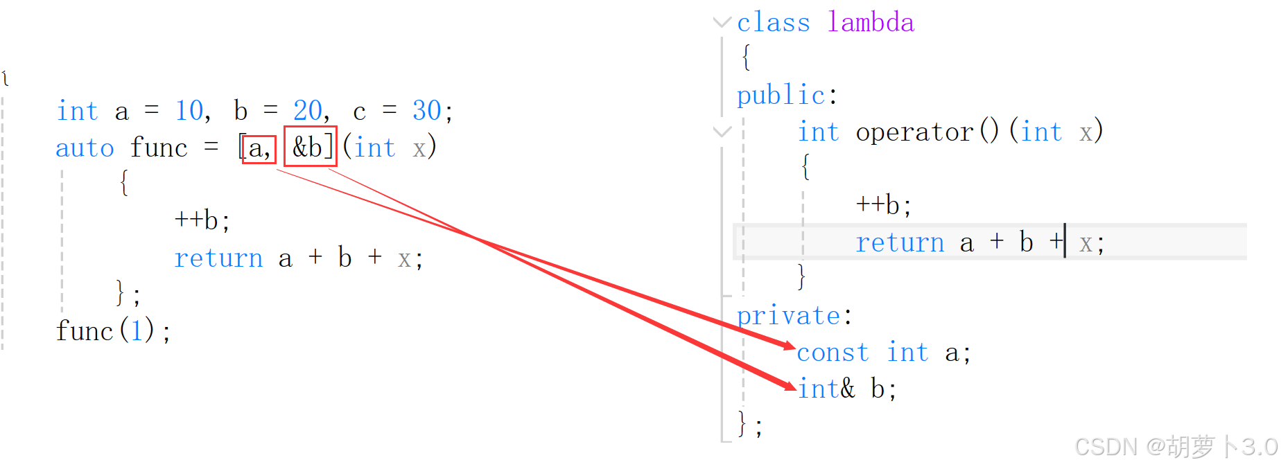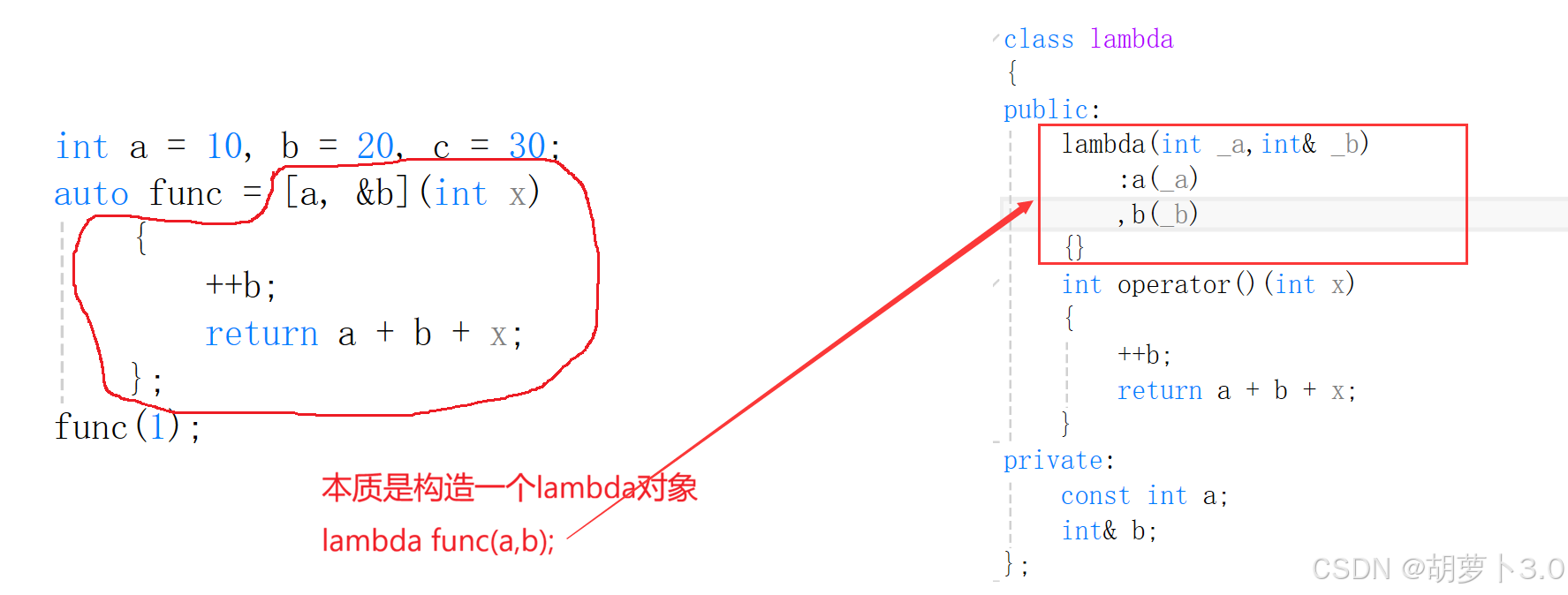 ok,捕捉列表中的a和b就变成这个lambda类的成员变量——