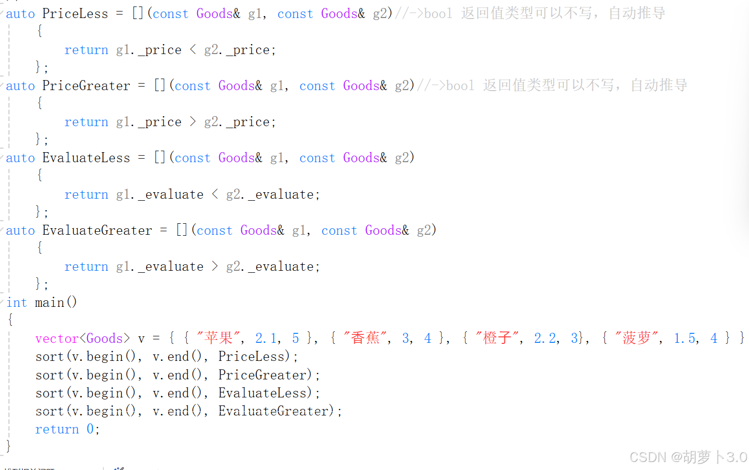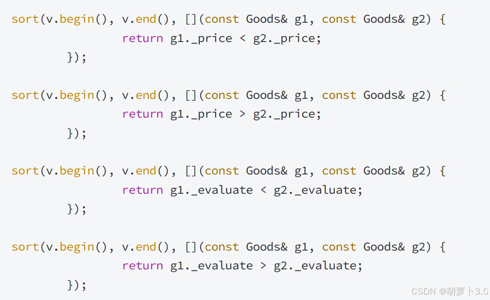 }这样写还是比较麻烦的,sort的第三个参数不是只可以接收仿函数,还可以接收lambda表达式——