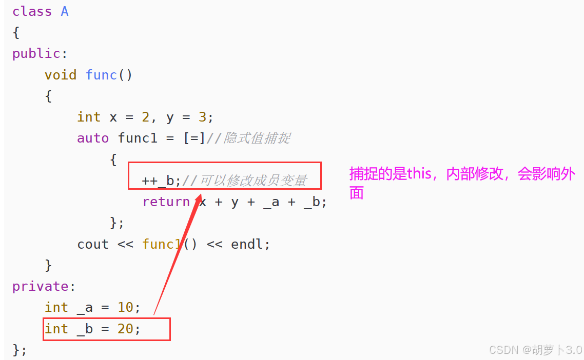 }并且当我们捕捉了this指针,还可以修改成员变量——