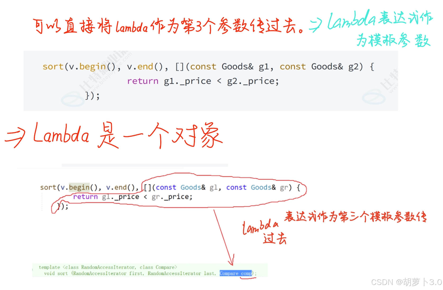 其实我们还可以更简便点,因为lambda表达式本身就是一个匿名对象,我们可以直接将lambda作为第三个参数传过去,lambda表达式作为模板参数