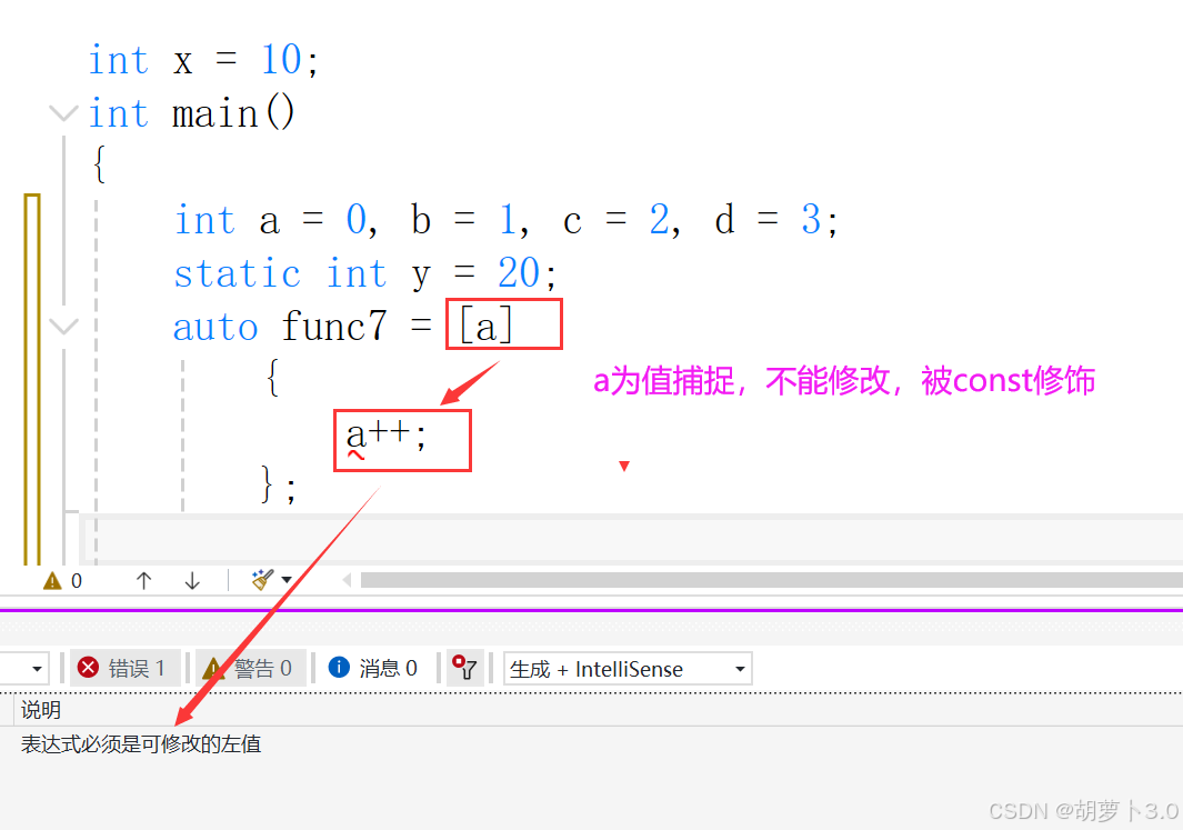 //a++; //值捕捉的变量不能修改