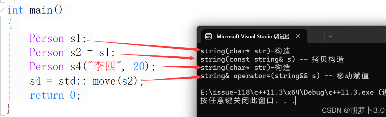cout << "string& operator=(string&& s) -- 移动赋值" << endl;