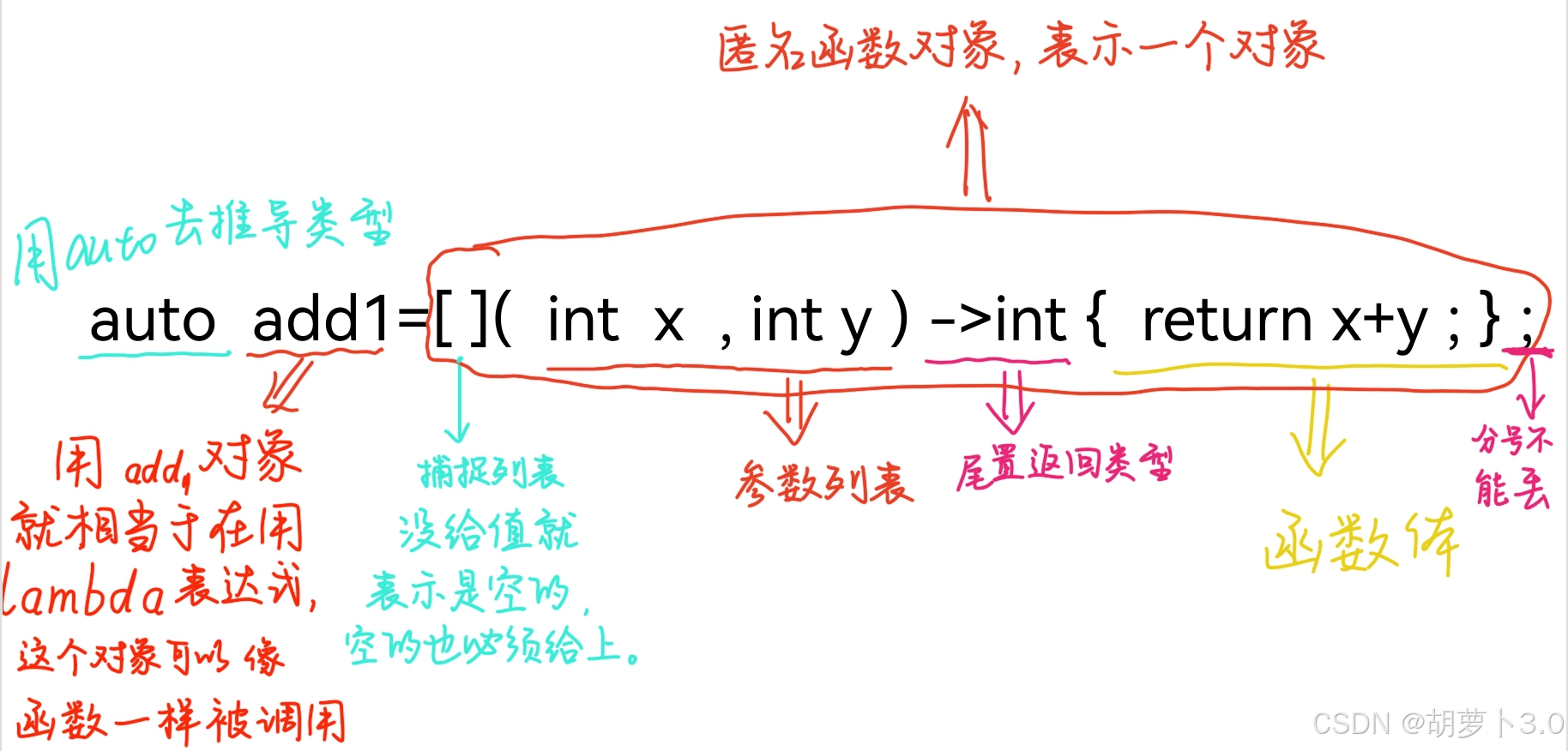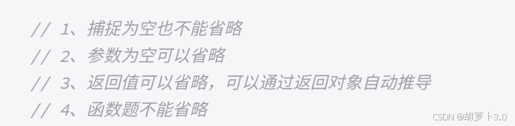仿函数的类名是编译器按一定规则生成的,保证不同的;ambda生成的类名不同,lambda表达式的参数/返回类型/函数体就是仿函数operator()的参数/返回类型/函数体,lambda的捕捉列表本质是生成的仿函数的成员变量,也就是说捕捉列表的变量都是lambda类构造函数的实参 (很重要,是一个面试题!!!)