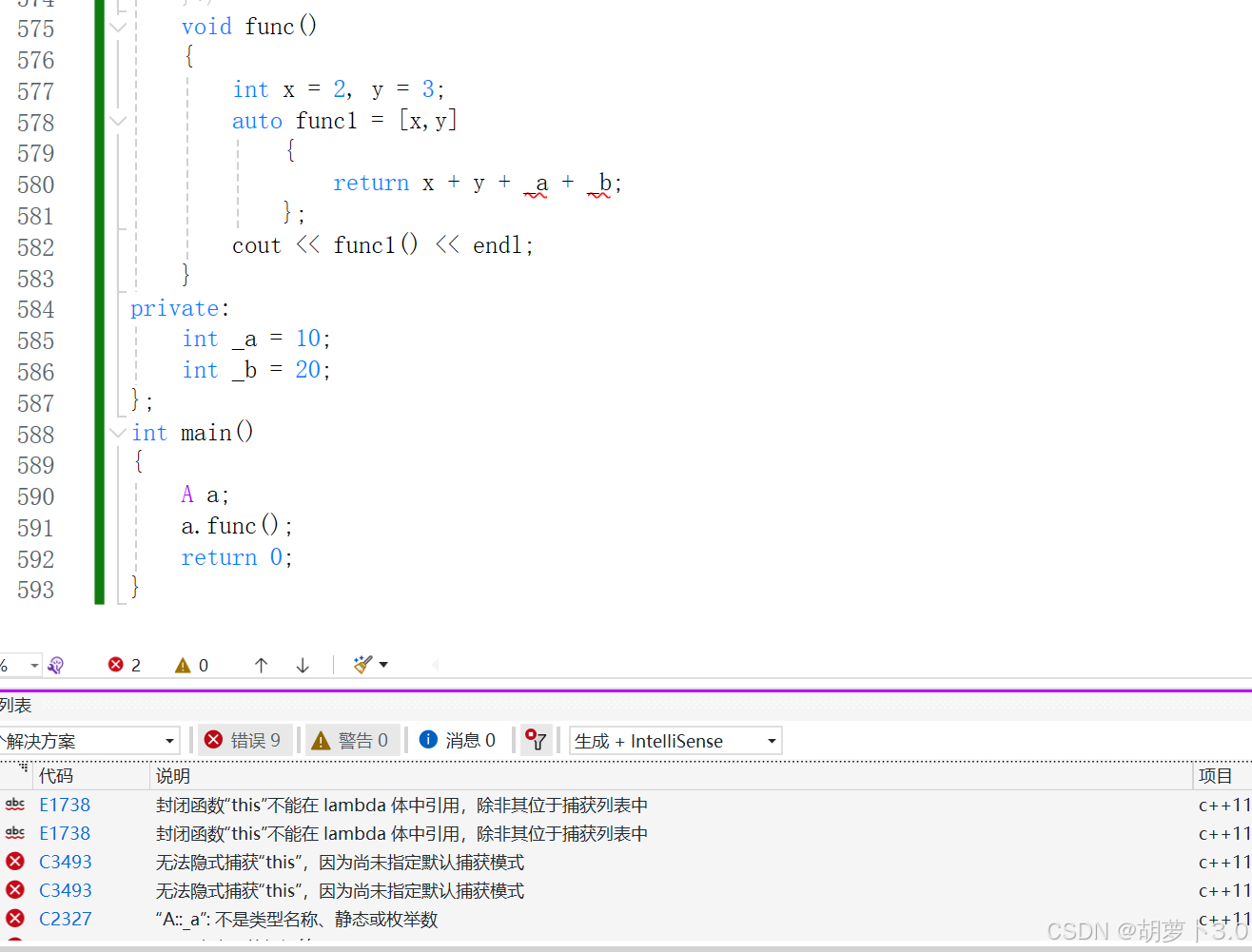 ok,此时我们就无法正常运行,这里我们显示捕捉,只捕捉了x和y,所以我们在lambda函数体中,我们只能使用x和y,不能使用成员变量。